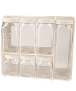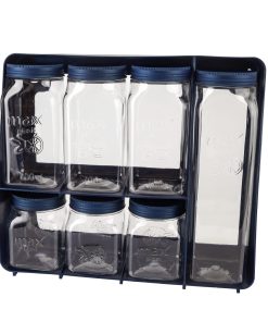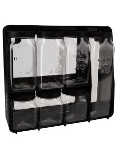 طقم مكون من 7 برطمانات بأحجام مختلفة مع حامل يساعدك على توفير المساحة وتنظيم المكونات.